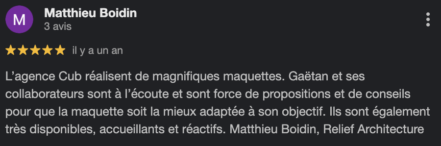 « Les investisseurs, jurys ou clients ont besoin de voir et toucher le projet pour y croire. Un plan 2D ou une 3D, ça reste abstrait. Une maquette physique rend votre projet concret, compréhensible et mémorable. »